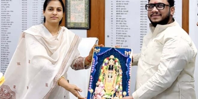 – डीएम से मुलाकात कर प्रतीक चिन्ह भेंट करते राष्ट्रीय प्रवक्ता शुभम रस्तोगी।