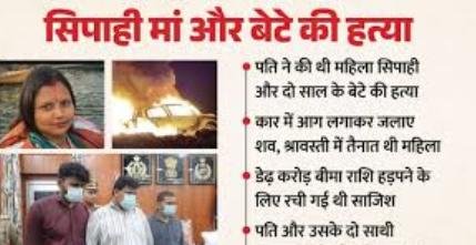 रामपुर पुलिस अधीक्षक सोमेंद्र मीना से बातचीत में बताया कि महिला सिपाही और उनके छोटे बेटे को पहले नशीली दवा खिलाकर बेहोश किया गया. इसके बाद उनके पति दान सिंह और उसके साथियों ने कार में पेट्रोल डालकर आग लगा दी. जब महिला सिपाही किसी तरह आग से बाहर निकल आई, तो आरोपी ने उसे दूसरी कार में बैठाकर उसके सिर पर हथौड़े से क्रूरता से हमला किया, जिससे मौके पर ही उसकी मौत हो गई. मासूम बच्चे की भी इसी घटना में मौत हो गई.