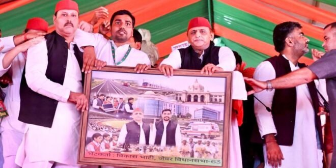 लखीमपुर खीरी: दादरी (ग्रेटर नोएडा) स्थित मिहिर भोज डिग्री कॉलेज मैदान में रविवार को समाजवादी पार्टी की ‘समाजवादी समानता भाईचारा रैली’ में भारी भीड़ उमड़ी। रैली को संबोधित करते हुए अखिलेश यादव ने भाजपा सरकार पर तीखा हमला बोला और दावा किया कि 2027 के विधानसभा चुनाव में जनता बदलाव लाएगी। सपा प्रदेश सचिव रेहान ख़ान ने महंगाई, बेरोजगारी और कानून-व्यवस्था को लेकर सरकार को घेरते हुए कहा कि प्रदेश की जनता अब परिवर्तन के लिए पूरी तरह तैयार है। उन्होंने पलिया क्षेत्र की बदहाली का मुद्दा उठाते हुए विकास कार्यों को तेज करने का आश्वासन दिया। रैली में पश्चिमी उत्तर प्रदेश के कई बड़े नेता भी मौजूद रहे। बड़ी संख्या में जुटी भीड़ को देखते हुए पार्टी नेताओं ने इसे 2027 विधानसभा चुनाव का आगाज़ बताया।