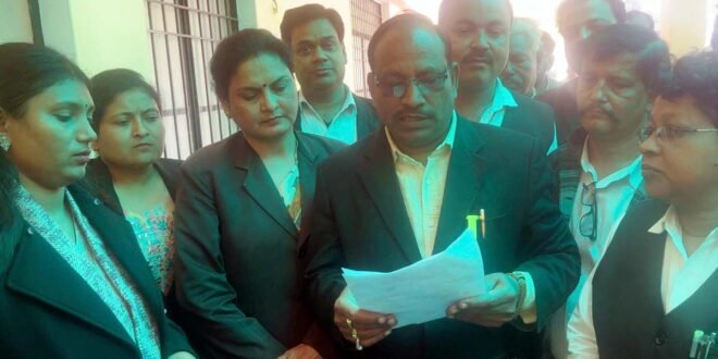 – तहसीलदार को ज्ञापन सौंपते अधिवक्ता।