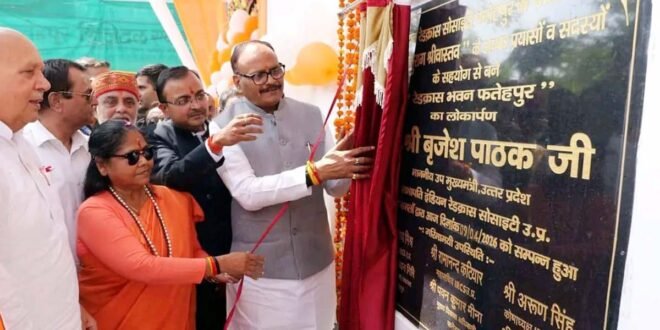 – रेडक्रास भवन का लोकार्पण करते डिप्टी सीएम बृजेश पाठक व अन्य।