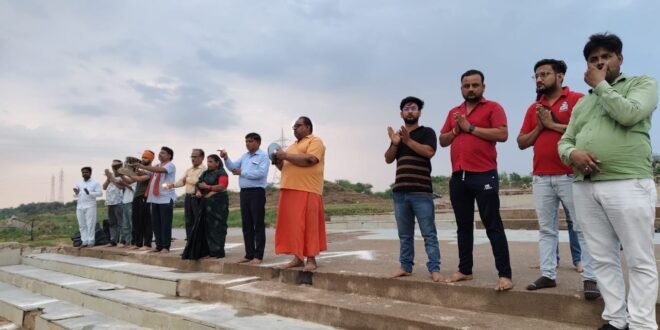 बांदा। मीडिया प्रभारी मितेश कुमार ने जानकारी देते हुए अवगत कराया कि बांदा के भूरागढ़ क्षेत्र के केन घाट पर मंगलवार की शाम भव्य केन जल महा आरती कार्यक्रम का आयोजन विश्व हिंदू महासंघ गौ रक्षा समिति एवं गंगा समग्र कानपुर प्रांत के संयुक्त तत्वावधान में आयोजित किया गया। इस मौके पर सभी श्रद्धालुओं ने शीश नवाकर केन मां से आशीर्वाद प्राप्त किया एवं आगामी पर्व गंगा दशहरा की एक दूसरे को ढेर सारी बधाइयां दी। इस मौके पर समिति के जिलाध्यक्ष एवं गंगा समग्र के जिला संयोजक महेश कुमार प्रजापति ने सभी को संबोधित करते हुए कहा कि केन मां को सभी लोग स्वच्छ रखें और इसमें किसी भी प्रकार की गंदगी प्रवाहित न करें, इस मौके पर जिलाध्यक्ष ने सभी को आगामी गंगा दशहरा पर्व की ढेरों शुभकामनाएं प्रेषित की और यह भी बताया कि 05 जून 2025 को शाम 06:00 बजे एक भव्य दीप उत्सव कार्यक्रम का आयोजन किया जाएगा जिसमें बांदा जिलाधिकारी जे० रीभा जी की गरिमामई उपस्थिति रहेगी। इस मौके पर शुतकीर्ति गुप्ता जिला सह प्रभारी आलोक कुमार निगम जिला महामंत्री राकेश कुमार त्रिपाठी जिला उपाध्यक्ष महेश कुमार धुरिया आशीष शुक्ला जिला प्रचार मंत्री रजनीश प्रजापति ब्लॉक अध्यक्ष सत्यम मिश्रा सहित तमाम पदाधिकारी लोग मौजूद रहे।