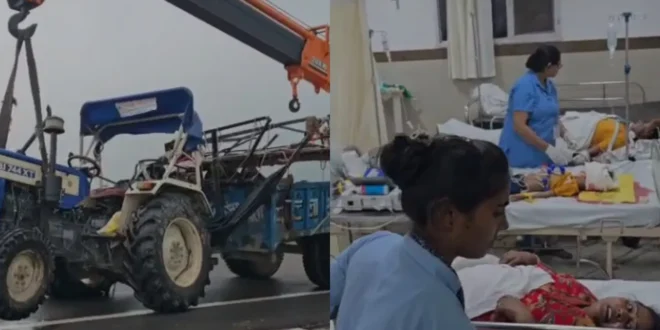 उत्तर प्रदेश के बुलंदशहर में एक दर्दनाक सड़क हादसा हो गया. यहां एक ट्रैक्टर की कंटेनर से जोरदार टक्कर हो गई. इस हादसे में आठ लोगों ने दम तोड़ दिया. सभी मृतक कासगंज के सोरों थाना के रहने वाले थे. हादसा बीती रात 2 बजे बुलंदशहर थाना अरनिया क्षेत्र के नेशनल हाईवे 34 पर घटाल गांव के पास हुआ. हादसे की सूचना मिलने पर तत्काल थाना अरनिया और आसपास के थाने की पुलिस फोर्स को मौके भेजा गया. जब ये हादसा हुआ उस समय 61 लोग ट्रैक्टर में सवार थे. सभी श्रद्धालु कासगंज से जाहरवीर (गोगाजी) के दर्शन के लिए राजस्थान के गोगामेड़ी जा रहे थे, तभी पीछे से आ रहे कैंटर ट्रक द्वारा ट्रैक्टर ट्राली में जोरदार टक्कर मार दी गई, जिससे ट्रैक्टर ट्राली मौके पर पलट गई. हादसे में आठ लोगोंं की मौत के अलावा 43 लोग इसमें घायल भी बताए जा रहे हैं.