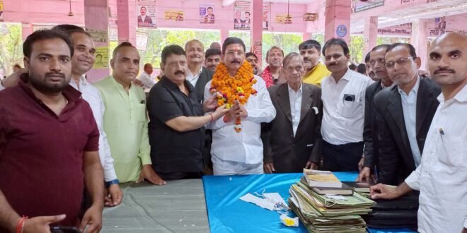 – स्टार प्रचारक एडवोकेट धर्मेन्द्र मिश्रा का स्वागत करते अधिवक्ता।