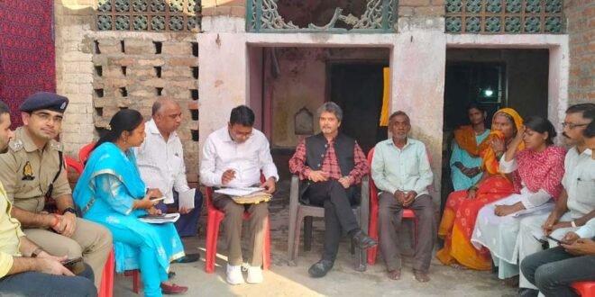 – पीड़ित परिवार से मुलाकात करते एससी एसटी आयोग के निदेशक व वरिष्ठ अन्वेषक।