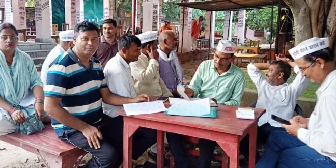 फतेहपुर। अटेवा पेंशन बचाओ मंच की बैठक कचेहरी स्थित अंबेडकर पार्क में जिलाध्यक्ष निधान सिंह की अध्यक्षता में संपन्न हुई। बैठक में प्रदेश कार्यकारिणी से प्राप्त दिशा निर्देशों को साझा किया। वर्तमान सत्र की गतिमान सदस्यता की समीक्षा की। साथियों को निर्देशित किया कि अल्प समय में बचे हुए साथियों को सदस्य बनाया जाए। जिला कोषाध्यक्ष देवेंद्र पांडेय ने कहा कि सभी ब्लॉकों के साथियों को एमएलसी वोटर के फॉर्म दिए गए थे सभी साथियों ने फॉर्म भर लिए अथवा नहीं और अधिक साथी एमएलसी फॉर्म भरें और अपने परिवार के सदस्यों व मित्रों को भी स्नातक एमएलसी के फॉर्म भरवायें तथा जल्द ही जिम्मेदार साथियों के पास जमा करें। जिला सोशल मीडिया प्रभारी अरविंद विश्वकर्मा ने कहा कि अटेवा संगठन पुरानी पेंशन बहाली हेतु लगातार आंदोलन कर रहा है। आगामी 25 नवंबर को नई दिल्ली में होने वाले विशाल धरना प्रदर्शन के लिए अधिक से अधिक साथी 26 सितंबर से टिकट बुक करवा लें। यदि टिकट में कोई समस्या होती है तो जिला कार्यकारिणी से संपर्क करें। जिलाध्यक्ष निधान सिंह ने कहा कि वर्तमान समय में शिक्षक साथियों की नौकरी में टेट का एक प्रकरण सुप्रीम कोर्ट द्वारा आया है। इस समस्या के समाधान के लिए भी हमारा संगठन प्रयत्नशील है। पहले चरण में संगठन की ओर से सांसदों, विधायकों को ज्ञापन देना है। जिसकी जिम्मेदारी पदाधिकारियों को सौंपी गई। जिला कार्यकारिणी की ओर से सांसद नरेश उत्तम को सुप्रीम कोर्ट के टेट वाले निर्णय के समाधान हेतु ज्ञापन सौंपा जाएगा। जिसमें अधिक से अधिक साथियों को प्रतिभाग करना है। बैठक में रामभुवन चौधरी, महेंद्र सिंह, वीर महेंद्र, अनिल कुमार सविता, कीर्ति कुमार पाल, धीरेंद्र सिंह, प्रीति श्रीवास्तव, हेमचंद चौधरी, अजय कुमार, उदित कुमार सचान, अरविंद विश्वकर्मा, अजय सविता, आशीष कुमार सोनी, रमेश कुमार सिंधिया सहित अन्य पदाधिकारी लोग बैठक में उपस्थित रहे।
