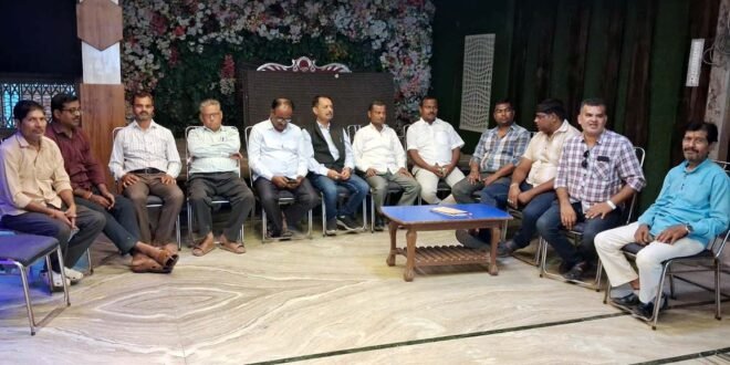 –  बैठक करते व्यापार मंडल के पदाधिकारी।