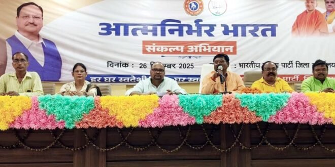 फतेहपुर। शुक्रवार को शहर के जेल रोड स्थित भारतीय जनता पार्टी कार्यालय में आत्मनिर्भर भारत संकल्प अभियान की कार्यशाला आयोजित हुई। जिसमें वक्ता के रूप में जिलाध्यक्ष मुखलाल पाल ने सम्बोधित किया। श्री पाल ने कहा कि राष्ट्रीय अध्यक्ष जगत प्रकाश नड्डा ने निर्णय लिया है कि आत्मनिर्भरता का यह संदेश आत्मनिर्भर भारत संकल्प अभियान के माध्यम से देश के हर नागरिक तक पहुंचाया जाये और उन्हें स्वदेशी उत्पादों के उपयोग व स्वदेशी जीवन मूल्यों को अपनाने का संकल्प लेने के लिए प्रेरित किया जाये। उन्होने उपस्थित मंडल अध्यक्षों व मंडल संयोजकों को बताते हुए कहा कि 28, 29 व 30 सितंम्बर को मंडल स्तर पर कार्यशाला आयोजित होनी है। मंडल कार्यशाला सम्पन्न होने पर विधिवत अभियान को जन-जन तक पहुंचाना है। जिसमें स्वदेशी बनाम विदेशी विषय पर डिबेट, विद्यालयों में एक हफ्ते तक स्वदेशी उत्पाद का उपयोग व उनके अनुभवों को सोशल मीडिया पर साझा करना है। वहीं आत्मनिर्भर भारत का सन्देश देने वाले पर्चे, बैनर स्टीकर का उपयोग करना है। कार्यक्रम में रवींद्र पाल सिंह, उदय लोधी, पुष्पराज पटेल, कुलदीप भदौरिया, रेखा सरोज, अपर्णा सिंह गौतम, अर्चना त्रिपाठी, बैजनाथ वर्मा, सुशीला मौर्या, प्रवीण सिंह, विक्रम सिंह चंदेल, अमित शिवहरे, सुमित द्विवेदी, विकास पासवान, अमित तिवारी, राधा साहू, ज्ञानचंद केसरवानी, डॉ शिव प्रसाद त्रिपाठी, जितेंद्र सिंह गौतम, अजय सिंह रिंकू लोहारी, मुन्ना सिंह, धनंजय द्विवेदी, स्वरूप राज सिंह जूली, अतुल त्रिवेदी, मोहर दयाल सिंह, जसवंत गिहार, राम महेश निषाद, रामनरायण शुक्ला, धर्मेन्द्र सिंह सहित पार्टी पदाधिकारी व कार्यकर्ता उपस्थित रहे।