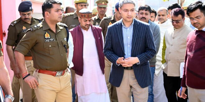– तांबेश्वर मंदिर की व्यवस्थाओं का जायजा लेते डीएम व एसपी।