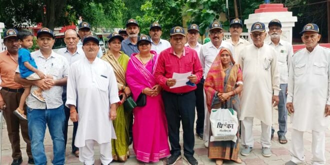 एसपी को शिकायती पत्र देने जाते पूर्व सैनिक।