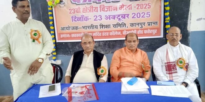 फतेहपुर। शहर के वीआईपी रोड स्थित सरस्वती विद्या मंदिर इंटर कालेज में विद्या भारती पूर्वी उत्तर प्रदेश की ओर से तीन दिवसीय विज्ञान मेला कल (आज) से शुरू होगा। विद्यार्थियों में वैज्ञानिक प्रतिभा विकसित करना मेले का उद्देश्य है। मेले की सभी तैयारियां पूर्ण कर ली गई हैं। मेले का समापन 26 अक्टूबर को होगा। यह बात गुरूवार को पत्रकारों से बातचीत करते हुए पूर्व संयुक्त शिक्षा निदेशक प्रयागराज डा0 दिव्यकान्त शुक्ल ने पत्रकारों से बातचीत करते हुए कही। वार्ता के दौरान विद्या भारती पूर्वी उत्तर प्रदेश के क्षेत्रीय संयोजक बांके बिहारी पाण्डेय, विद्या भारती कानपुर प्रांत के प्रदेश निरीक्षक अयोध्या प्रसाद मिश्र व सरस्वती विद्या मंदिर इंटर कालेज के प्रधानाचार्य नरेन्द्र सिंह ने भी हिस्सा लिया। पत्रकारों से बातचीत करते हुए अतिथियों ने बताया कि विद्या भारती पूर्वी उत्तर प्रदेश क्षेत्र का क्षेत्रीय विज्ञान मेला 24, 25 एवं 26 अक्टूबर को सरस्वती विद्या मन्दिर इण्टर कालेज वीआईपी रोड में आयोजित किया जा रहा है। इस मेले के जरिए विद्यार्थिया में वैज्ञानिक प्रतिभा विकसित करने का अवसर मिलेगा। मेले में क्षेत्र के कुल 49 जनपदों के आठ समितियों के प्रतिभागी एवं संरक्षक आचार्य, दीदियों एवं व्यवस्था में लगे सभी बंधुओं की संख्या लगभग 550 रहेगी। मेले में विज्ञान प्रदर्शन, विज्ञान प्रश्न मंच, विज्ञान पत्र प्रस्तुति, विज्ञान प्रयोगात्मक, आचार्य पत्र प्रस्तुति तथा प्रन्तीय विज्ञान संयोजक द्वारा सर्वे रिपोर्ट प्रस्तुत की जाएगी। मेले का विशेष आकर्षण प्रसिद्ध भौतिक विज्ञानी एचसी वर्मा की विज्ञान वार्ता है। अतिथियों ने बताया कि विद्या भारती पूर्वी उत्तर प्रदेश क्षेत्र की आठ समितियों में गोरक्ष नगरीय, गोरक्ष ग्रामीण, अवध नगरीय, अवध ग्रामीण, कानपुर नगरीय, कानपुर ग्रामीण, काशी नगरीय एवं काशी ग्रामीण है।