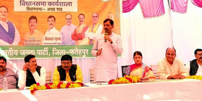 फतेहपुर। अयाह शाह विधानसभा क्षेत्र के गाजीपुर में भारतीय जनता पार्टी ने मतदाता गहन पुनरीक्षण कार्यशाला आयोजित की। जिसमें मुख्य अतिथि के रूप में जिलाध्यक्ष मुखलाल पाल ने उपस्थित बूथों, शक्ति केंद्रों सहित असोथर, गाजीपुर, बहुआ मंडल के पदाधिकारियों को आयोग की संचालित मतदाता गहन पुनरीक्षण एसआईआर कार्यक्रम में संगठनात्मक विमर्श व जिम्मेदारियां सौंपी गई।