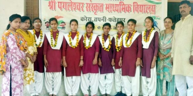 फतेहपुर। उत्तर प्रदेश माध्यमिक संस्कृत शिक्षा परिषद द्वारा आयोजित वर्ष 2026 की पूर्व मध्यमा द्वितीय वर्ष कक्षा 10 वीं की परीक्षा में श्री पगलेश्वर संस्कृत माध्यमिक विद्यालय, करेरा तपनी की छात्रा मोनिका देवी ने कीर्तिमान स्थापित किया है। मोनिका ने 81 प्रतिशत अंक अर्जित कर न केवल विद्यालय में प्रथम, बल्कि पूरे जनपद में दूसरा स्थान प्राप्त किया है। छात्रा की इस ऐतिहासिक उपलब्धि से क्षेत्र और विद्यालय परिवार में हर्ष की लहर है। मोनिका देवी की यह सफलता उनकी कड़ी मेहनत और अटूट लगन का प्रतिफल है। खजुआ विकास खंड के ग्राम रुरवा दौलतियापुर (बनियानी) के निवासी किसान शिवमंगल की पुत्री मोनिका के पास संसाधनों का नितांत अभाव था। कक्षा 8 के बाद एक समय ऐसा भी आया जब संसाधनों की कमी के कारण उनकी शिक्षा बंद होने की कगार पर थी, लेकिन पुत्री के जज्बे को देखते हुए माता-पिता ने हिम्मत जुटाई और उनका प्रवेश श्री पगलेश्वर संस्कृत माध्यमिक विद्यालय में कराया। मोनिका ने अपनी सफलता का श्रेय अपने माता-पिता और गुरुजनों के कुशल मार्गदर्शन को दिया है। संस्थान की अन्य छात्राओं ने भी उत्कृष्ट प्रदर्शन कर विद्यालय का मान बढ़ाया है। कक्षा 10 वीं में रितिका एवं दिव्या देवी ने 75 प्रतिशत अंकों के साथ विद्यालय में दूसरा स्थान, जबकि प्रियंका देवी एवं प्रिया देवी ने 73 प्रतिशत अंकों के साथ तीसरा स्थान प्राप्त किया। वहीं, उत्तर मध्यमा द्वितीय वर्ष (कक्षा 12वीं) में ज्योति देवी ने विद्यालय स्तर पर प्रथम स्थान प्राप्त किया, जबकि मोनी देवी दूसरे और अंशु तीसरे स्थान पर रहीं। परीक्षा परिणाम घोषित होने के उपरांत विद्यालय परिसर में एक भव्य सम्मान समारोह आयोजित किया गया। विद्यालय के प्रबंधक आलोक कुमार सिंह ने मेधावी छात्रा मोनिका देवी को माल्यार्पण कर, मिठाई खिलाई और उपहार भेंट कर सम्मानित किया। कार्यवाहक प्रधानाचार्य श्री रमानाथ द्विवेदी ने छात्राओं के परिश्रम की सराहना करते हुए उनका उत्साहवर्धन किया। इस अवसर पर विद्यालय के मंत्री शिव कुमार सिंह, करेरा ग्राम प्रधान धर्मेंद्र सिंह, कमलकांत त्रिवेदी, सर्वेश कुमार, चिंतामणि और अजीत कुमार विशेष रूप से उपस्थित रहे। साथ ही शिक्षक ओमदत्त द्विवेदी, प्रिया साहू, उर्मिला त्रिपाठी और रुचि देवी ने भी छात्राओं को उनके उज्ज्वल भविष्य की शुभकामनाएं दीं।