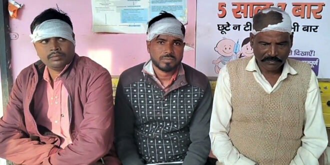 – दबंगों की पिटाई से घायल पिता व पुत्र।