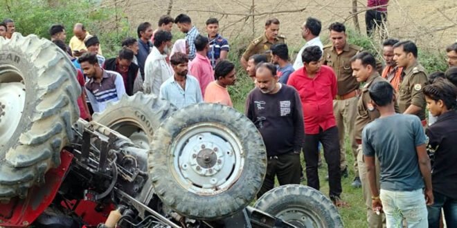 दुर्घटनाग्रस्त ट्रैक्टर।