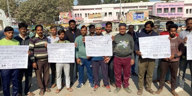 फतेहपुर। दीपावली के एक दिन पूर्व पटाखा मंडी में आग लगने के अपना सब कुछ खो चुके व्यापारियों ने सोमवार को सदर अस्पताल व नगर पालिका तिराहे पर प्रदर्शन करते हुए प्रशासन पर किसी तरह का मुआवजा न देने व उपेक्षा किये जाने का आरोप लगाया। प्रदर्शन करने वाले व्यापारियों का कहना रहा है कि उन लोगों ने कर्ज लेकर पटाखा मंडी में अपनी दुकानें लगाई थी। दुकान के लिए लाईसेंस भी लिया था। अचानक मंडी में आग लग जाने के कारण सभी व्यापारियों का करोड़ो रूपये का माल जलकर खाक हो गया जिससे पटाखा व्यापारी भारी नुकसान में आ गये। प्रशासन की ओर से व्यापारियों को मदद एवं मुआवजा की बात कही गयी थी लेकिन घटना को लगभग पचास दिन होने के बाद भी किसी तरह की कोई मुआवजा राशि या राहत नहीं दी गयी। पटाखा व्यापरियों ने कर्ज लेकर व उधार माल उठाया था लेकिन आग लगने से सब नष्ट हो गया। कर्जदार अपना पैसा मांगने का दबाव बना रहे है। जिससे पटाखा व्यापारी व उनका परिवार परेशान है व आत्महत्या की कगार पर खड़ा है। बताते चलें कि दीपावली के एक दिन पूर्व पटाखा मंडी में आग लग गयी थी जिससे आधा सैकड़ा के करीब दुकाने चपेट में आ गयी थी आग की सूचना पर दमकल विभाग के वाहनों ने पहुंचकर किसी तरह आग पर काबू पाया। वही दुकानदारों के नुकसान पर प्रशासन द्वारा मदद के लिए आश्वस्त भी किया गया था। घटना के करीब 50 दिन बाद भी किसी तरह की राहत न मिलने से दुकानदारों का गुस्सा फूट पड़ा। व्यापारियों ने जिला अस्पताल चौराहा पर पदर्शन किया व प्रशासन पर उपेक्षा का आरोप लगाते हुए दुकानदारों से भीख मांगकर विरोध भी जताया। इस मौके पर दीपक कश्यप, राजन साहू, प्रदीप गुप्ता, मशरम अली, आरिफ, सतीश चंद्र, मनीष अवस्थी, पुत्तू लाल, आदित्य राज सिंह, संजू श्रीवास्तव, राजन मिश्रा, शिवम मिश्रा, सुनील शिवहरे, वैभव गुप्ता, पंकज कुमार आदि रहे।