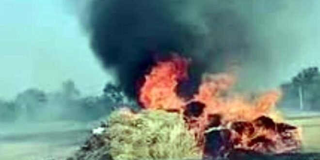 खागा, फतेहपुर। कोतवाली क्षेत्र के पुराइन गांव में सोमवार को खेत में रखी पांच बीघे फसल जलकर राख हो गई। आग अज्ञात कारण से लगी। गांव निवासी किसान विमलेश कुमार के खेत में पांच बीघे फसल के बोझ रखे थे। देखते ही देखते आग ने विकराल रूप धारण कर लिया। फसल जलकर राख हो गई। इस घटना से गांव के किसान को करीब 75 हजार रुपए का नुकसान हुआ है। किसान की फसल अचानक आग लग गई। सूखी फसल के बोझ आग में बदल गए। तेज हवा के कारण आग तेजी से फैलती चली गई और आसपास के कई खेत इसकी चपेट में आ गए। पहले ही दमकल टीम मौके पर आग को काबू पाया। आग लगने की सूचना मिलते ही ग्रामीण मौके पर पहुंच गए और अपने स्तर पर आग बुझाने का प्रयास करने लगे, लेकिन आग की लपटें इतनी तेज थीं कि उस पर काबू पाना मुश्किल हो गया। सूचना मिलने पर दमकल विभाग की टीम मौके पर पहुंची और कड़ी मशक्कत के बाद आग पर काबू पाया। भाजपा नेता एवं क्षेत्र पंचायत सदस्य धनंजय सिंह ने बताया कि किसानों की फसल का सही मुआवजा नहीं मिला तो सीएम तक शिकायत की जाएगी।