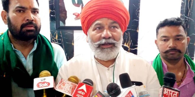 – पत्रकारों से बातचीत करते भाकियू के राष्ट्रीय प्रवक्ता राकेश टिकैत।