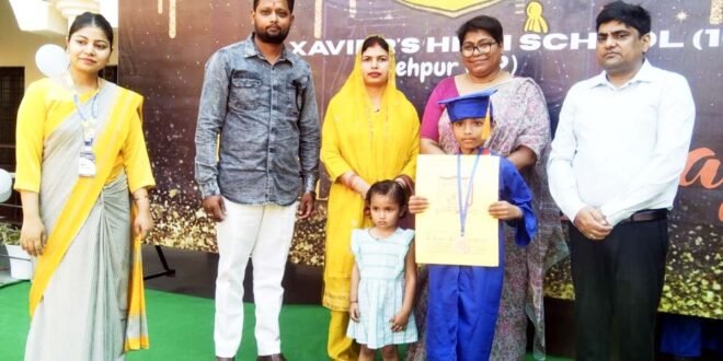 फतेहपुर। सेंट ज़ेवियर्स हाईस्कूल में विद्यार्थियों के उज्जवल भविष्य की कामना के साथ ग्रेजुएशन सेरेमनी का भव्य आयोजन विद्यालय परिसर में हर्षाेल्लास एवं गरिमामय वातावरण में संपन्न हुआ। इस विशेष अवसर पर विद्यालय के नन्हे-मुन्ने विद्यार्थियों ने ग्रेजुएशन गाउन एवं कैप पहनकर समारोह की शोभा बढ़ाई। कार्यक्रम का शुभारंभ प्रबंधक नीतीश कुमार एवं प्रधानाचार्या डॉ. प्रियंका गुप्ता ने दीप प्रज्जवलन एवं प्रार्थना के साथ किया। इसके पश्चात विद्यार्थियों ने मनमोहक सांस्कृतिक प्रस्तुतियां देकर उपस्थित अभिभावकों एवं अतिथियों का मन मोह लिया। रंग-बिरंगे परिधानों और आत्मविश्वास से भरपूर प्रस्तुति ने समारोह को यादगार बना दिया। समारोह में विद्यालय की प्रधानाचार्या डॉ. प्रियंका गुप्ता ने विद्यार्थियों को संबोधित करते हुए कहा कि आज का यह अवसर हमारे नन्हे विद्यार्थियों के जीवन का एक महत्वपूर्ण पड़ाव है। यह केवल एक कक्षा से दूसरी कक्षा में प्रवेश नहीं, बल्कि आत्मविश्वास, ज्ञान और नए सपनों की ओर बढ़ता एक सुंदर कदम है। उन्होंने कहा कि विद्यालय में प्राप्त संस्कार, शिक्षा और अनुशासन बच्चों के उज्ज्वल भविष्य की मजबूत नींव हैं। उन्होंने अभिभावकों को भी बच्चों के सर्वांगीण विकास में उनके सहयोग के लिए धन्यवाद दिया। प्रबंधक नीतीश कुमार ने अपने संबोधन में कहा कि आज का यह कार्यक्रम विद्यालय परिवार के लिए अत्यंत हर्ष, गर्व और उल्लास का अवसर है। नन्हे विद्यार्थियों को इस प्रकार आत्मविश्वास के साथ आगे बढ़ते देखना वास्तव में हृदय को प्रसन्नता से भर देता है। विद्यालय का उद्देश्य केवल बच्चों को पुस्तकीय ज्ञान देना नहीं है, बल्कि उन्हें संस्कारवान, अनुशासित, आत्मनिर्भर और जिम्मेदार नागरिक बनाना है। मुझे प्रसन्नता है कि सेंट ज़ेवियर्स हाईस्कूल निरंतर इसी दिशा में उत्कृष्ट कार्य कर रहा है। कार्यक्रम के अंत में विद्यालय प्रबंधन एवं शिक्षकों ने सभी विद्यार्थियों को शुभकामनाएँ देते हुए उनके उज्ज्वल भविष्य की कामना की। पूरा विद्यालय परिसर तालियों की गड़गड़ाहट, उत्साह और भावनात्मक क्षणों से गूंज उठा।
