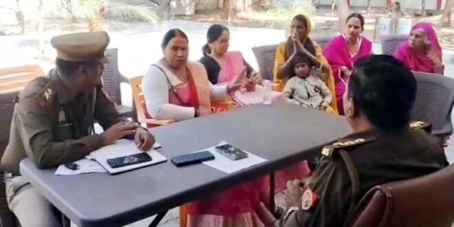 – घोष थाने में एसओ से वार्ता करतीं गुलाबी गैंग लोकतांत्रिक की अध्यक्ष।
