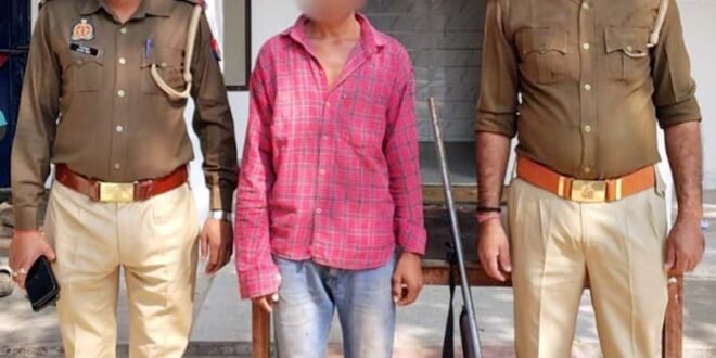 – पुलिस टीम की गिरफ्त में बंदूक चोर।