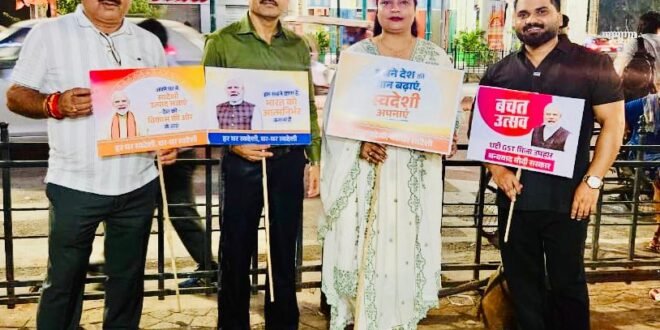 लखनऊ। हज़रतगंज के व्यापारिक क्षेत्र में विधान परिषद सदस्य उमेश द्विवेदी, राष्ट्रीय लोक दल की राष्ट्रीय सचिव नम्रता शुक्ला, आदित्य शुक्ला तथा व्यापारी इमरान ख़ान ने व्यापारियों से मुलाक़ात की। इस दौरान प्रमुख मुद्दा जीएसटी की घटी हुई दरें रहीं, जिन पर व्यापारियों ने खुलकर अपनी राय रखी। व्यापारियों ने कहा कि प्रधानमंत्री नरेंद्र मोदी के नेतृत्व में केंद्र सरकार द्वारा जीएसटी संरचना को सरल और दरों को कम करने का निर्णय ऐतिहासिक है। यह कदम छोटे और मध्यम व्यापारियों के लिए बड़ी राहत है।मुलाक़ात के दौरान यह भी चर्चा हुई कि उत्तर प्रदेश में मुख्यमंत्री योगी आदित्यनाथ की सक्रिय नीतियों और केंद्र सरकार की पहल से व्यापार जगत को नई दिशा मिल रही है। व्यापारियों ने कहा कि जीएसटी दरों में कमी से न केवल कारोबार को गति मिलेगी बल्कि उपभोक्ताओं को भी सीधा लाभ होगा।व्यापारियों ने संयुक्त रूप से प्रधानमंत्री नरेंद्र मोदी और मुख्यमंत्री योगी आदित्यनाथ के प्रति आभार व्यक्त किया और विश्वास जताया कि यह कदम देश की अर्थव्यवस्था और उत्तर प्रदेश के व्यापारिक माहौल को नई ऊँचाइयों तक ले जाएगा।