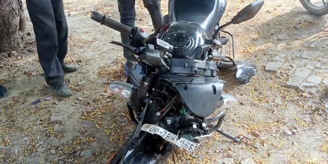 – दुर्घटना में क्षतिग्रस्त बाइक।