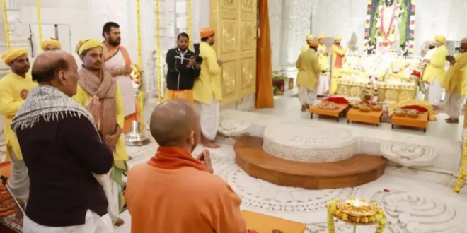 रक्षा मंत्री राजनाथ सिंह ने बुधवार (31 दिसंबर) को प्राण प्रतिष्ठा द्वादशी के मौके पर राम मंदिर परिसर में अन्नपूर्णा मंदिर में धर्म ध्वजा फहराई और पूजा-अर्चना में हिस्सा लिया. इस दौरान सिंह के साथ उत्तर प्रदेश के मुख्यमंत्री योगी आदित्यनाथ भी मौजूद थे.अन्नपूर्णा मंदिर राम मंदिर परिसर में स्थित सात मंदिरों में से एक है,श्रीराम की जयकारों और मंत्रोच्चार के बीच रक्षा मंत्री राजनाथ सिंह और मुख्यमंत्री योगी ने पूरे विधि विधान से पूजा अर्चना की और मां अन्नपूर्णा मंदिर के शिखर पर धर्म ध्वजा फहराई. दर्शन और पूजन के बाद जैसे ही दोनों नेता मंदिर परिसर से बाहर निकले तो श्रद्धालुओं ने जय श्रीराम के जयकारे लगाकर उनका स्वागत किया