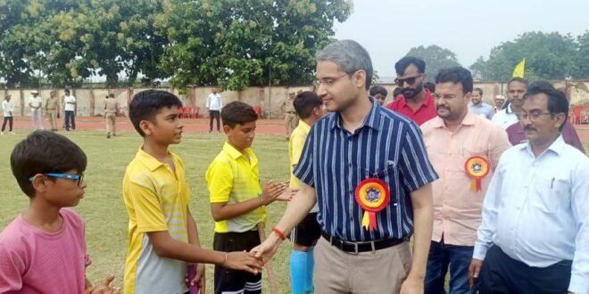 खिलाड़ियों का परिचय प्राप्त करते डीएम रविन्द्र सिंह।