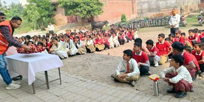 – बच्चों को सीपीआर की जानकारी देते होम्योपैथिक चिकित्सक डा. अनुराग श्रीवास्तव।