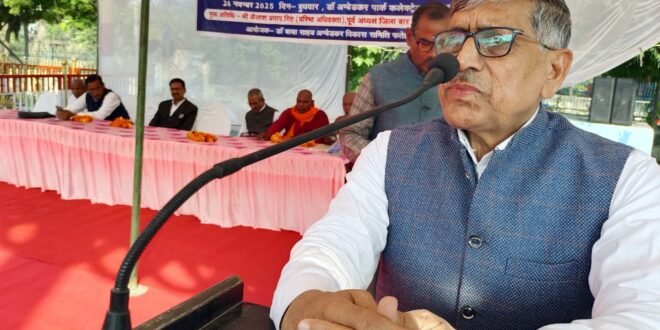 फतेहपुर। कलेक्ट्रेट स्थित डॉ भीमराव अंबेडकर पार्क में डॉ. बाबा साहेब अंबेडकर विकास समिति के आयोजन में संविधान दिवस उत्सव विचार गोष्ठी एवं मेघा अलंकरण समारोह का आयोजन किया गया। कार्यक्रम की अध्यक्षता गया प्रसाद ने की। मुख्य अथिति के रूप में जिला बार एसोसिएशन के पूर्व अध्यक्ष कैलाश प्रताप सिंह व विशिष्ट अतिथि पूर्व महामंत्री बचानी लाल के अलावा नगर पालिका परिषद के अध्यक्ष राजकुमार मौर्य व विजयानंद ने शिरकत की। मुख्य अतिथि ने संविधान दिवस पर कहा कि संविधान में प्रत्येक नागरिक एवं संस्था ने प्रदत्त संवैधानिक अधिकारों एवं कर्तव्यों का पालन करते हुए देश ने विविध क्षेत्रों में जो भी प्रगति की है उसमें देश की संविधान सभा की उन प्रतिभाओं का अमूल्य योगदान रहा है जिन्होंने अपना सर्वाेच्च श्रम एवं समय देखकर 2 वर्ष 11 माह 18 दिनों के अच्छे प्रयास से भारतीय संविधान के रूप में अमूल्य धरोहर अंतिम रूप में राष्ट्र के समक्ष 26 नवंबर 1949 को प्रस्तुत किया। 26 जनवरी 1950 को संपूर्ण भारत गणराज्य में प्रभावित किया गया। संविधान सभा की अनेकों मूलधन्य प्रतिमाओं के बीच भारत रत्न बाबा साहब डॉक्टर भीमराव अंबेडकर का एक विशिष्ट स्थान है। मेघा अलंकरण में हाईस्कूल व इंटरमीडिएट के मेधावी छात्र-छात्राओं को प्रशस्ति पत्र व मोमेंटो देकर सम्मानित किया। इस मौके पर संरक्षक जियालाल, बृज किशोर, अखिलेश चन्द्र, शत्रुघन लाल, मयाराम एडवोकेट, मनोज प्रकाश, रमेश बौद्ध भी मौजूद रहे।