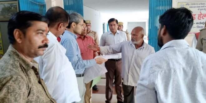 कलेक्ट्रेट गैलरी में पीड़ित की समस्या सुनते डीएम।