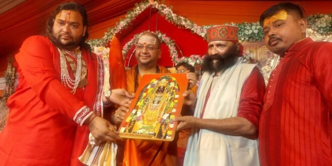 – शंकराचार्य ओंकारानन्द सरस्वती व कथा व्यास चन्दन कृष्ण महाराज ने शाल ओढ़ाकर व भगवान राम का मोमेंटो देकर किया सम्मान