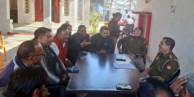 – कोतवाली परिसर में पत्रकारों से संवाद करते कोतवाली प्रभारी।