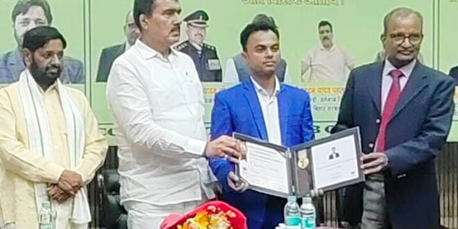 – कुमार शेखर को अवार्ड देकर सम्मानित करते अतिथि।