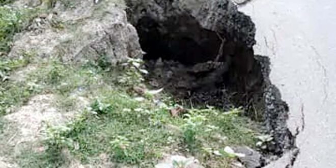 – सड़क किनारे गहरे गड्ढे का दृश्य।