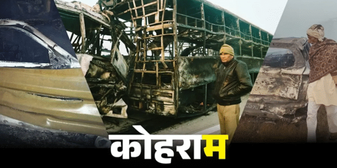 मथुरा: यमुना एक्सप्रेसवे पर मंगलवार तड़के आगरा से नोएडा जा रही लेन पर घने कोहरे के बीच तेज रफ्तार में दौड़ रहे कई वाहन आपस में टकरा गए। सात बसों और दो कारों में भीषण आग लग गई। कई लोग वाहनों के अंदर फंस गए, कुछ ने बसों ने कूदकर अपनी जान बचाई। इस हादसे में अब तक 13 लोगों की मृत्यु की पुष्टि हुई है वहीं दो दर्जन से अधिक घायलों को अस्पताल में भर्ती कराया गया है। डीएम सीपी सिंह ने बताया कि हादसे में अब तक 13 लोगों की मृत्यु की पुष्टि हुई है।