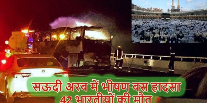 सऊदी अरब: सऊदी अरब में सोमवार देर रात एक सड़क हादसे में 42 भारतीयों की मौत हो गई। मक्का से मदीना जाते समय इनकी बस डीजल टैंकर से टकरा गई और इसमें आग लग गई। मृतकों में 20 महिलाएं और 11 बच्चे शामिल हैं। जानकारी के मुताबिक, हादसे में सिर्फ बस का ड्राइवर ही जिंदा बचा है मृतकों में ज्यादातर हैदराबाद के बताए जा रहे हैं। हादसा मदीना से लगभग 160 किलोमीटर दूर मुहरास के पास भारतीय समयानुसार रात लगभग 1:30 बजे हुआ। उस समय कई यात्री सो रहे थे। उन्हें बचने का कोई मौका नहीं मिला तेलंगाना सरकार ने कहा है कि वह रियाद में भारतीय दूतावास के संपर्क में है। राज्य सरकार की ओर से जारी बयान में बताया गया कि मुख्यमंत्री रेवंत रेड्डी ने दिल्ली में मौजूद अधिकारियों को निर्देश दिए हैं कि वे दूतावास से नजदीकी तालमेल बनाकर पीड़ितों की पहचान और अन्य औपचारिकताओं में मदद करें।