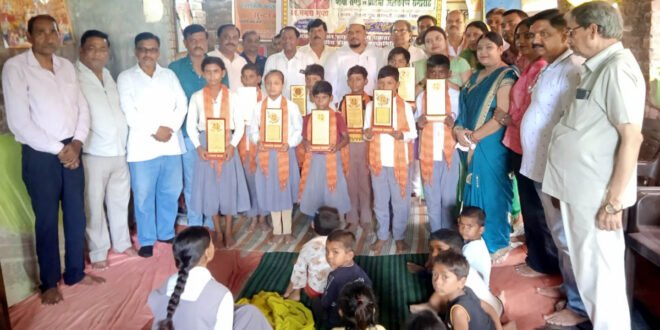 – मेधावियों को एकलव्य सम्मान से सम्मानित करते परिषद के पदाधिकारी।