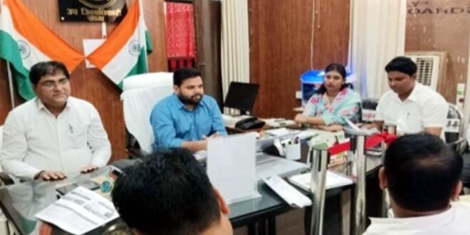 – मतदाता पुनरीक्षण संशोधन की बैठक में भाग लेते एसडीएम व अन्य।