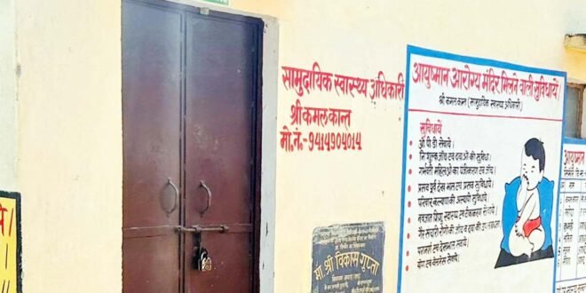 – आयुष्मान आरोग्य मंदिर के गेट पर पड़ा ताला।