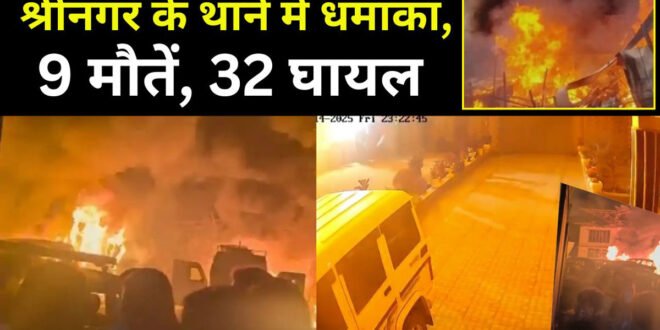 जम्मू-कश्मीर के श्रीनगर में नौगाम पुलिस स्टेशन में शुक्रवार रात करीब 11:22 बजे बड़ा धमाका हुआ। 9 लोगों की मौत हो गई है, 32 लोग घायल हैं। इनका 92 आर्मी बेस और SKIMS सौरा हॉस्पिटल में इलाज जारी है।अधिकारियों के मुताबिक, ब्लास्ट उस समय हुआ जब पुलिस व्हाइट कॉलर आतंकी मॉड्यूल मामले में जब्त विस्फोटक के सैंपल ले रही थी। हालांकि अभी यह स्पष्ट नहीं है कि क्या पुलिस स्टेशन में पूरा 360 किलो विस्फोटक रखा गया था या फिर कुछ हिस्सा ही लाया गया था। जम्मू-कश्मीर के डीजीपी नलिन प्रभात ने कहा कि, यह एक हादसा था। सैंपलिंग के वक्त ब्लास्ट हुआ। मारे गए 9 लोगों में से एक इंस्पेक्टर, 3 फॉरेंसिक टीम मेंबर, 2 क्राइम ब्रांच फोटोग्रॉफर, 2 राजस्व अधिकारी और एक दर्जी शामिल है। दरअसल यह विस्फोटक हरियाणा के फरीदाबाद से गिरफ्तार डॉ. मुजम्मिल गनई के किराए के घर से जब्त किया गया था। गनई को दिल्ली ब्लास्ट केस में पहले ही अरेस्ट किया जा चुका है। 10 नवंबर को दिल्ली में लाल किला के पास कार ब्लास्ट में 13 लोगों की मौत हो गई थी।