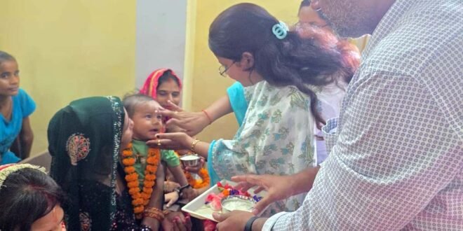 – महिलाओं की गोद भराई के साथ कुपोषित बच्चों को बांटी पोषण पोटली