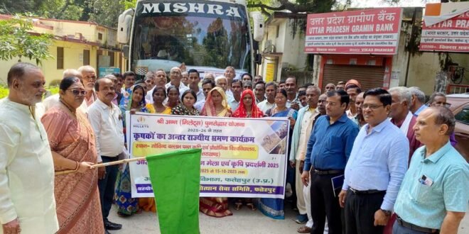 – किसानों के दल को हरी झण्डी दिखाकर रवाना करतीं विधायक कृष्णा पासवान।