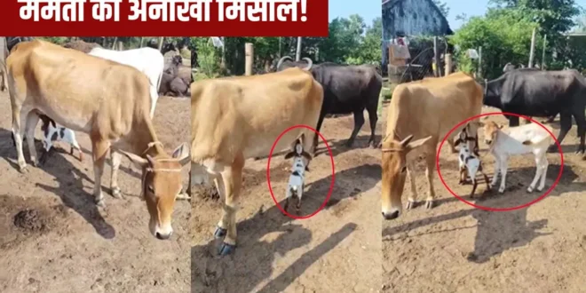 तेलंगाना के मुलुगु जिले से एक भावुक कर देने वाली घटना सामने आई है. यहां एक गाय ने अपनी ममता दिखाते हुए एक अनाथ मेमने को अपने बच्चे की तरह दूध पिलाया. मामले में एक स्थानीय किसान सम्मय्या के खेत में एक भेड़ ने दो मेमनों को जन्म दिया, लेकिन भेड़ की अचानक मौत हो गई. इसके बाद गाय ने इन मेमनों को अपना दूध पिलाया.मामला मुलुगु जिले में वाजेडु मंडल का है. यहां एक किसान के खेत में एक भेड़ ने दो मेमनों को जन्म दिया, लेकिन भेड़ की अचानक मौत हो गई. इससे मेमने भूख से तड़पने लगे, तभी एक गाय ने उनकी मदद की. गाय ने मेमने को अपने बछड़े की तरह स्वीकार कर उन्हें अपना दूध पिलाया. इसके बाद जब भी मेमना भूखा होता, गाय के पास दौड़कर जाता और वह उसे दूध पिला देती. अब मेमना गाय के साथ ही रहता है, जैसे उसका अपना बच्चा हो. किसान भी इस अनमोल बंधन को देखकर खुश हैं.इस अजीबोगरीब लेकिन दिल को छू लेने वाली घटना को देखकर पूरा गांव हैरान है. इलाके में इसकी चर्चा हो रही है. किसान के घर पर लोगों की भीड़ उमड़ पड़ी, जो कोई भी इस दृश्य को देख रहा है हर कोई हैरान है. इस घटना का वीडियो सोशल मीडिया पर पोस्ट होते ही वायरल हो गया है और लोग इस पर तरह-तरह की प्रतिक्रिया दे रहे हैं.जहां आज के दौर में लोग स्वार्थ और मतभेदों में उलझकर अपनों को अनाथ छोड़ रहे हैं और करुणा जैसे मानवीय गुण कम होते जा रहे हैं, वहीं पशु-पक्षी उच्च नैतिकता का परिचय देते हुए एक प्रेरणादायक उदाहरण स्थापित कर रहे हैं. गाय की यह ममतामयी कार्रवाई यह दर्शाती है कि संकट के समय एक-दूसरे की मदद करने और मुश्किल में फंसे लोगों के साथ खड़ा होना केवल मानव स्वभाव ही नहीं, बल्कि समस्त जीवों के सह-अस्तित्व का एक अटूट हिस्सा है.