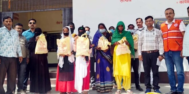 – नए टीबी रोगियों को पोषण सामग्री वितरित करते रेडक्रास चेयरमैन।
