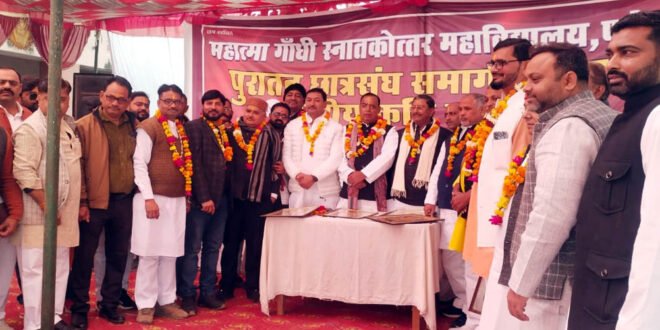 फतेहपुर। शहर के जीटी रोड शांतीनगर स्थित महात्मा गांधी डिग्री कॉलेज परिसर में पुरातन छात्र संघ सम्मान समारोह एवं कवि सम्मेलन का आयोजन किया गया। जिसमें कार्यक्रम की अध्यक्षता पूर्व महामंत्री राजेंद्र शुक्ल ने किया। कार्यक्रम का संचालन पूर्व महामंत्री कुलदीप सिंह भदौरिया ने किया। साठ पूर्व पदाधिकारियों को माल्यार्पण कर प्रतीक चिन्ह देकर सम्मानित किया। वक्ताओं ने कहा कि आज भले ही छात्र संघ के पूर्व पदाधिकारी अलग-अलग क्षेत्र में अपनी पहचान बना रहे हो लेकिन उनको पहचान दिलाने का कार्य महात्मा गांधी डिग्री कॉलेज में छात्र संघ के चुनाव जीतने से ही मिली। यह भी चर्चा की गई कि आने वाले समय में पुरातन छात्र संघ समारोह को प्रतिवर्ष आयोजित किया जाएगा और यह आयोजन समिति छात्र संघ चुनाव बहाली के लिए भी प्रयास करेगी। इस अवसर पर यह भी निर्णय लिया गया कि आज चाहे जिस पार्टी से छात्र संघ के पदाधिकारी अपना प्रतिनिधित्व कर रहे हो लेकिन जब महात्मा गांधी डिग्री कॉलेज के छात्र संघ के पूर्व पदाधिकारियों की बात आए तो यह आयोजन समिति एक होकर एक नाके से उसके लिए कार्य करें और अगर यह संभव होता है तो वह दिन दूर नहीं जब फतेहपुर छात्रसंघ के पूर्व पदाधिकारी चेयरमैन, विधायक और सांसद बनेंगे। इसके साथी यह भी तय किया गया कि जो फतेहपुर से यह चिंगारी जली है यह आसपास के जनपदों तक जाए और जब भी चर्चा चले तो इतिहास की इबारत लिखी जाए कि यह आग फतेहपुर से जली थी। इस अवसर पर कवि सम्मेलन का भी आयोजन किया गया जिसमें कवियों ने एक से बढ़कर एक रस फुहार छोड़ी जिसको सुनकर लोगों ने खूब तालियां बजाई। जिसमें समीर शुक्ला, शिवशरण बंधु, प्रवीण प्रसून, उमाकांत सहित अन्य कवि रहे। वही पूर्व अध्यक्ष प्रमोद द्विवेदी, नरेंद्र मुंशी, स्वरूप राज सिंह जूली, वीरेंद्र सिंह चौहान, दिलीप पटेल, दीपक कुमार डबलू, बुद्धराज धाकड़ी, सुरेश तिवारी, अमित मिश्रा उर्फ नीटू, अरुणेश पांडेय, राम प्रताप सिंह गौतम, विवेक श्रीवास्तव, शैलेंद्र शरण सिंपल, करन सिंह, राम सिंह पटेल, रोहित श्रीवास्तव, आदित्य श्रीवास्तव, भूपेंद्र सिंह, कासिम अली, संतोष त्रिपाठी, जितेंद्र लोधी, घनश्याम पाल टक्करी, नदीमउद्दीन पप्पू, जैद अहमद, अतुल मौर्या दीपू, इरफान काजमी, सतेन्द्र गुप्ता, अजय सिंह उर्फ रिंकू लोहारी, अपर्णा सिंह गौतम सहित तमाम छात्र नेताओं ने मंच से संबोधित किया।