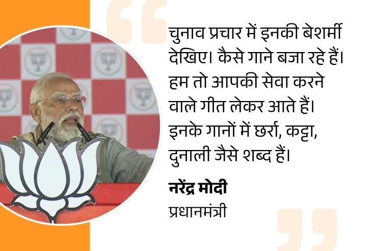 - जैसी पार्टी वैसा इनका प्रचार: ये RJD और कांग्रेस वाले जैसी इनकी पार्टी है वैसा ही इन लोगों का चुनाव प्रचार है। प्रचार में देखिए कैसे गाने बज रहे हैं। कट्टा, दुनाली ऐसे गानों के साथ ये लोग अपना चुनाव प्रचार कर रहे हैं। क्या ये लोग बिहार में कभी सुशासन ला सकते हैं। साथियों ये कभी सुशासन नहीं ला सकते हैं।