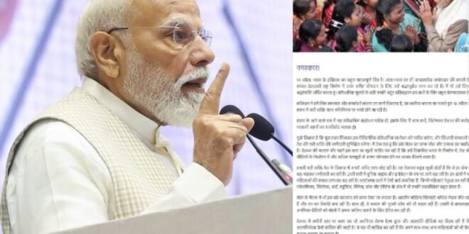 प्रधानमंत्री ने बताया कि इसी सोच के तहत ‘नारी शक्ति वंदन अधिनियम’ लाया गया, जो महिलाओं के लिए आरक्षण सुनिश्चित करता है. उन्होंने उम्मीद जताई कि संसद में इस संवैधानिक संशोधन को जल्द पारित किया जाएगा. पत्र में प्रधानमंत्री ने महिलाओं से अपील की कि वे अपने-अपने सांसदों को पत्र लिखकर इस विधेयक के समर्थन के लिए प्रेरित करें. यह कदम आने वाली कई पीढ़ियों के भविष्य को प्रभावित करेगा. साथ ही उन्होंने सभी महिलाओं को आने वाले त्योहारों की शुभकामनाएं देते हुए उनके अच्छे स्वास्थ्य, सुख और समृद्धि की कामना की.