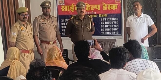 बिजनौर – ( अफजलगढ़ ) महिलाओं और बालिकाओं की सुरक्षा, सम्मान और स्वावलंबन के साथ-साथ साइबर अपराधों से बचाव के लिए अफजलगढ़ पुलिस द्वारा लगातार जागरूकता अभियान चलाया जा रहा है। इसी क्रम में बुधवार को थाना क्षेत्र के गांव रसूलपुर आबाद में साइबर हेल्प डेस्क के संबंध में जागरूकता चौपाल का आयोजन किया गया। पुलिस अधीक्षक अभिषेक झा के निर्देश पर आयोजित इस कार्यक्रम में अफजलगढ़ थाना पुलिस ने ग्राम प्रधान नजमुस्सहर के आवास पर ग्रामीणों को साइबर अपराध से बचने के तरीके और साइबर हेल्पलाइन के उपयोग की विस्तृत जानकारी दी। चौपाल में मौजूद महिलाओं और ग्रामीणों को नारी सुरक्षा, नारी सम्मान और नारी स्वावलंबन से जुड़े विषयों पर भी जागरूक किया गया। पुलिस अधिकारियों ने बताया कि आजकल साइबर ठगी के मामले तेजी से बढ़ रहे हैं, इसलिए किसी भी अनजान कॉल, लिंक या ओटीपी साझा करने से बचना चाहिए। साथ ही लोगों को सरकार द्वारा संचालित महत्वपूर्ण हेल्पलाइन नंबरों की जानकारी भी दी गई। इनमें 1076 मुख्यमंत्री हेल्पलाइन, 1090 वूमेन पावर लाइन, 181 महिला हेल्पलाइन, 112 पुलिस आपात सेवा, 102 गर्भवती महिलाओं एवं नवजात शिशुओं के लिए एंबुलेंस सेवा, 108 सामान्य एंबुलेंस सेवा, 1098 चाइल्डलाइन, 101 अग्निशमन सेवा और 1930 साइबर हेल्पलाइन शामिल हैं। थानाध्यक्ष बिजेंद्र सिंह राठी ने ग्रामीणों से अपील करते हुए कहा कि यदि किसी व्यक्ति के साथ ऑनलाइन ठगी या साइबर अपराध होता है तो तुरंत 1930 साइबर हेल्पलाइन पर शिकायत दर्ज कराएं, ताकि समय रहते कार्रवाई की जा सके। उन्होंने भरोसा दिलाया कि पुलिस हर समय जनता की सुरक्षा के लिए तत्पर है। इस अवसर पर ग्राम प्रधान नजमुस्सहर, प्रधान पति रईस अहमद, महिला उपनिरीक्षक रीनू पंवार, उपनिरीक्षक शिवम तायल, महिला कांस्टेबल किरण देवी, दीपा तोमर, आरती देवी और अंजू सहित अन्य पुलिसकर्मी मौजूद रहे। पुलिस की इस पहल की ग्रामीणों और महिलाओं ने सराहना करते हुए इसे जनहित में महत्वपूर्ण कदम बताया।